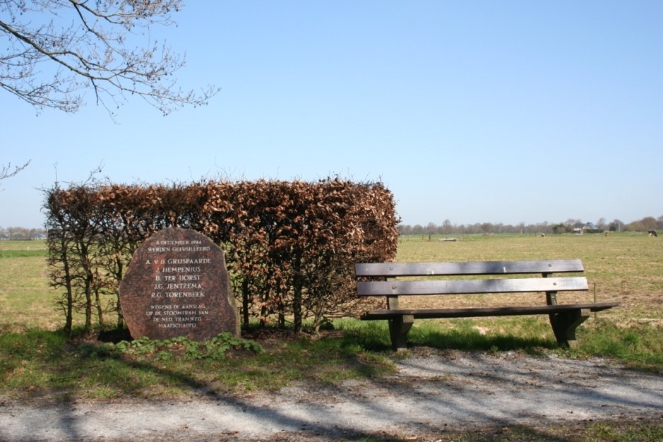 Op 23 november 1944 heeft het verzet op deze plaats een aanslag gepleegd op de stoomtram die onderweg was van Drachten naar Groningen. Als vergelding zijn vijf willekeurige arrestanten uit het Scholtenhuis in Groningen op 8 december 1944 hierheen gebracht en op de plaats van de aanslag gefusilleerd.