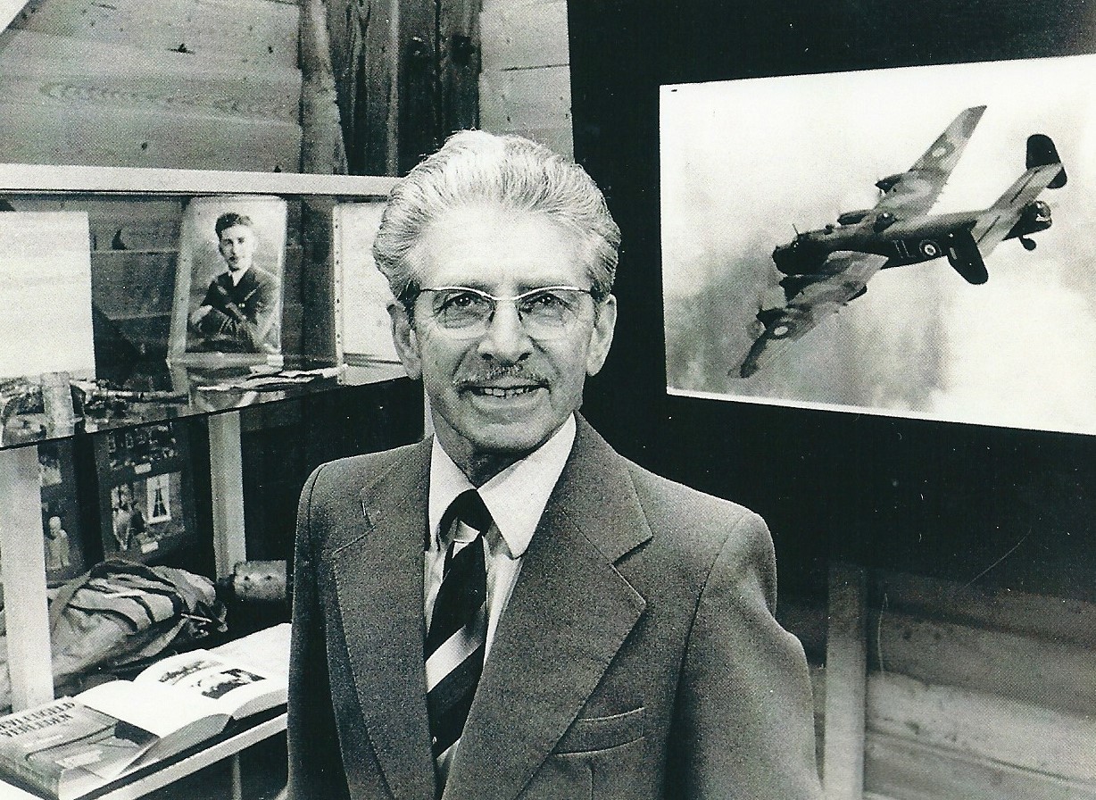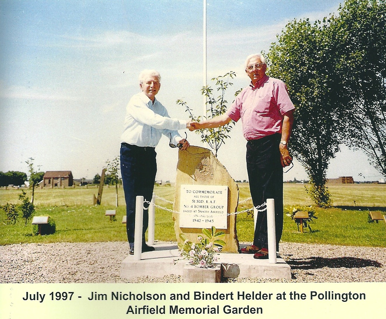 Flying Officer Jim Nicholson bezoekt de molen in Grijpskerk in april 1985. Er was een speciale tentoonstelling over de Tweede Wereldoorlog. Jim Nicholson opende de tenstoonstelling door de Engelse vlag op te hijsen bij de molen.